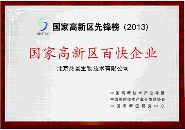 由中國(guó)高新技術(shù)產(chǎn)業(yè)導(dǎo)報(bào)社、中國(guó)高新技術(shù)產(chǎn)業(yè)開發(fā)區(qū)協(xié)會(huì)和中國(guó)高新區(qū)研究中心共同主辦“國(guó)家高新區(qū)先鋒榜(2013)”推選結(jié)果公布。北京熱景生物技術(shù)有限公司年度經(jīng)營(yíng)規(guī)模和快速增長(zhǎng)方面取得的突出成績(jī),榮列“國(guó)家高新區(qū)先鋒榜(2013)百快企業(yè)”榜單。