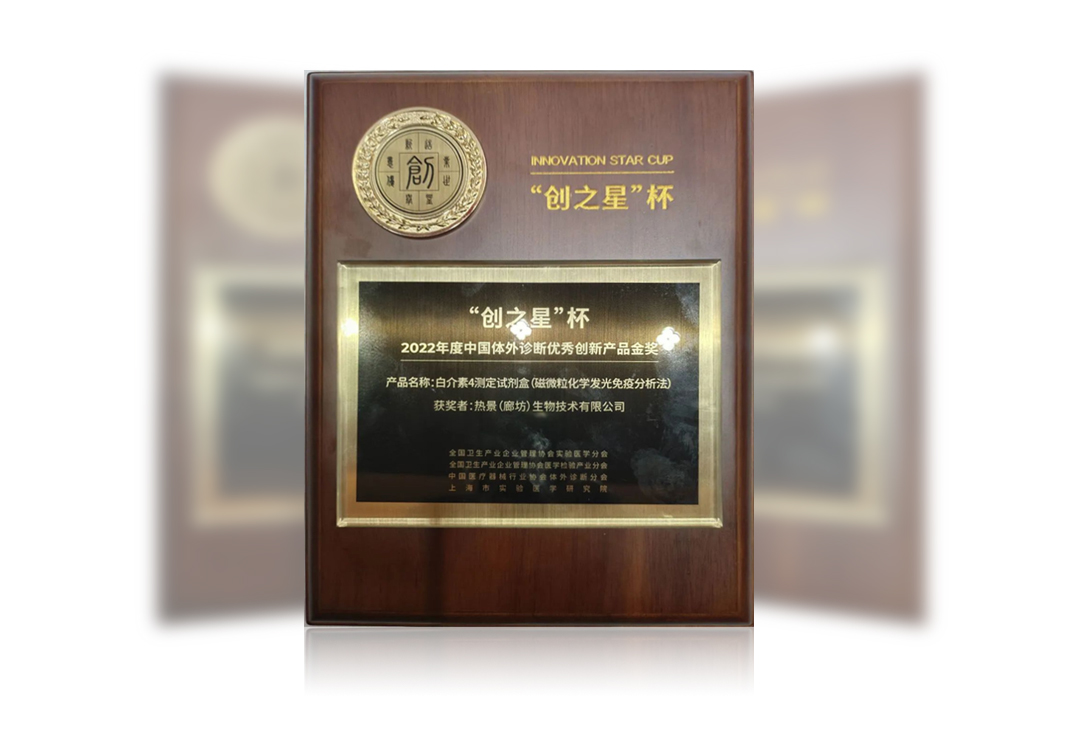 在5月27日“創(chuàng)之聲”第八屆中國實驗醫(yī)學大會現(xiàn)場,熱景生物旗下熱景(廊坊)生物技術(shù)有限公司生產(chǎn)的專有特色細胞因子系列產(chǎn)品,榮獲2022年度“創(chuàng)之星”杯中國體外診斷優(yōu)秀創(chuàng)新產(chǎn)品金獎。