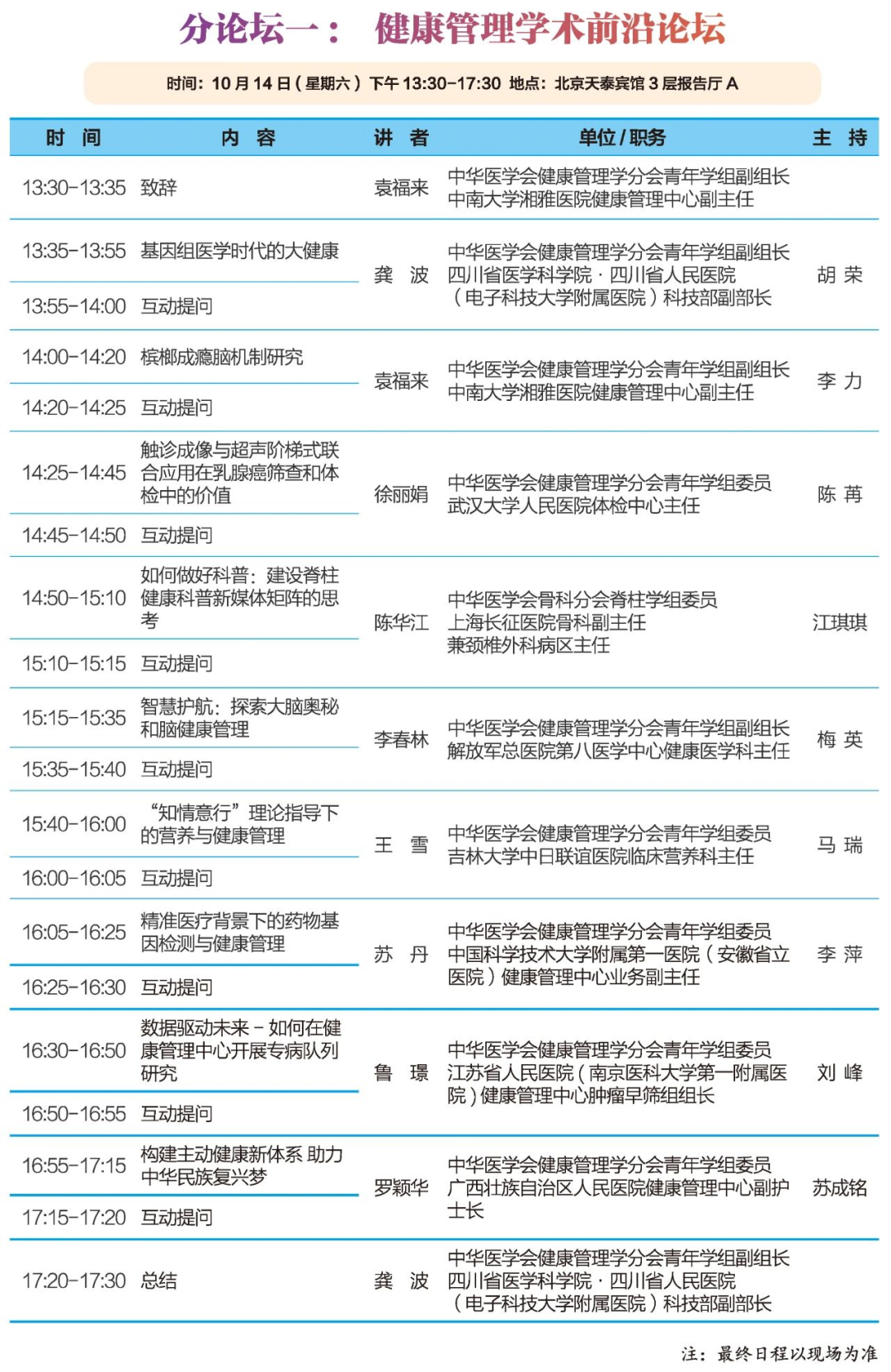 大會專題報(bào)告地點(diǎn):分論壇二 ? 健康管理學(xué)科建設(shè)論壇(三層報(bào)告廳B)