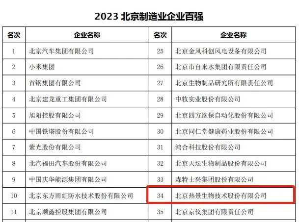 近日,北京企業(yè)聯(lián)合會、北京市企業(yè)家協(xié)會公布了2023北京企業(yè)百強名單,熱景生物榮登熱景生物榮登2023北京高精尖企業(yè)百強、2023北京制造業(yè)企業(yè)百強、2023北京服務(wù)業(yè)企業(yè)百強三大榜單!三大榜單!