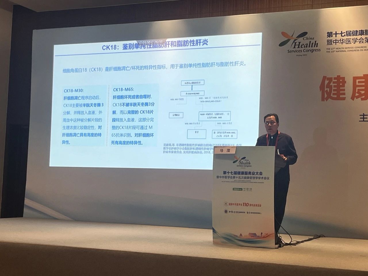 北京航天總醫(yī)院體檢中心張晗教授在專(zhuān)題講座中指出,細(xì)胞角蛋白18(CK18)片段在代謝相關(guān)脂肪性肝病MAFLD的早期篩查、疾病進(jìn)展監(jiān)測(cè)和治療效果評(píng)估中具有重要價(jià)值。全球約有16.6億MAFLD患者,中國(guó)城市人口中MAFLD患病率為28.77%。CK18-M30和M65片段與肝細(xì)胞凋亡和壞死相關(guān),其水平隨疾病嚴(yán)重程度升高。CK18在診斷MASH(代謝相關(guān)脂肪性肝炎)方面的性能優(yōu)于傳統(tǒng)肝酶指標(biāo),是目前最認(rèn)可的MASH輔助診斷指標(biāo)。張晗教授強(qiáng)調(diào),多學(xué)科協(xié)作管理是MAFLD治療的關(guān)鍵,通過(guò)綜合管理和個(gè)性化治療,可以有效改善患者的預(yù)后。